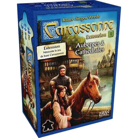 Auberges et Cathédrales, première extension pour Carcassonne, ajoute de nombreuses tuiles permettant d’étendre considérablement le jeu et propose également des tuiles spéciales, dont les cathédrales, qui peuvent augmenter la valeur des villes... à condition de les achever avant la fin de la partie !