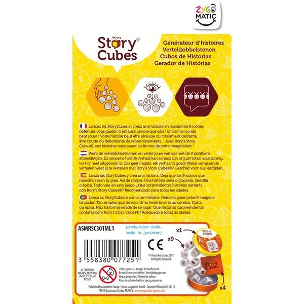 Lancez les dés et inventez des histoires pleines de rebondissements incluant les symboles tirés. Avec Story Cubes Classic, découvrez différents objets, personnages, lieux et animaux à associer dans des récits originaux.