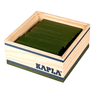 Issues de forêts françaises 100% renouvelables, les planchettes KAPLA sont en bois de pin des Landes, naturel et non-traité. Les planchettes colorées sont teintées avec de la peinture alimentaire.