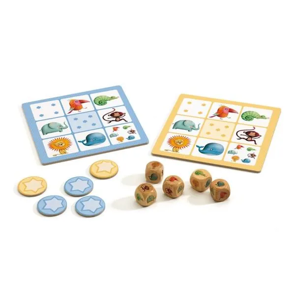 Contient: 4 cartes, 28 jetons et 5 dés.