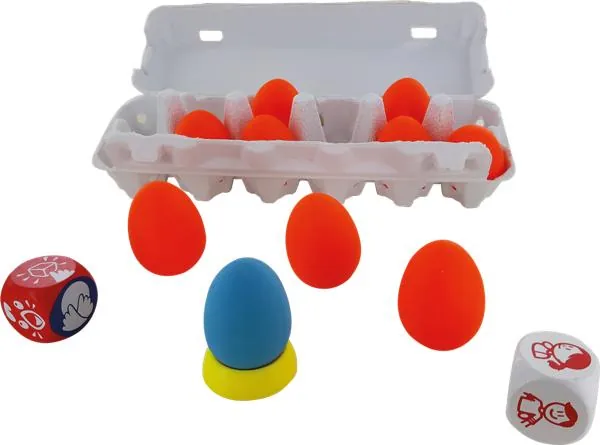Qu'allons-nous devoir faire à ce tour ? Crier « Cocorico », attraper l'œuf sur le coquetier, prendre une pause disco ? Les situations loufoques ne manquent pas et seul le plus rapide pourra rajouter un œuf quelque part sur son anatomie, afin d'adopter une pause toujours plus improbable.