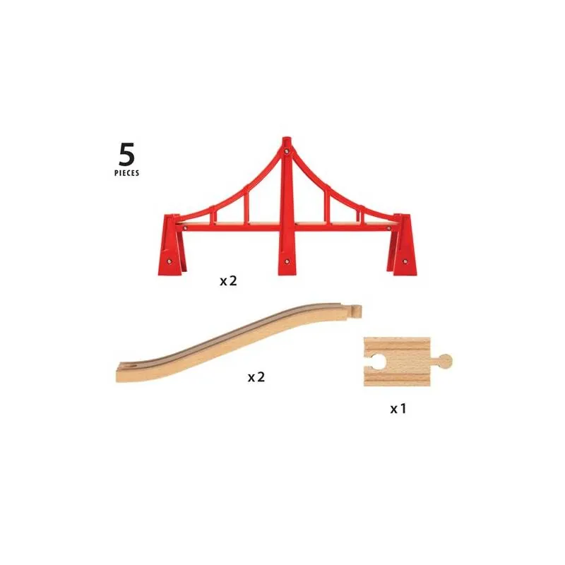 Voici le double pont suspendu, le pont le plus long proposé par la gamme Brio. Il peut également être divisé si vous ajoutez deux rails montants pour créer deux ponts suspendus.