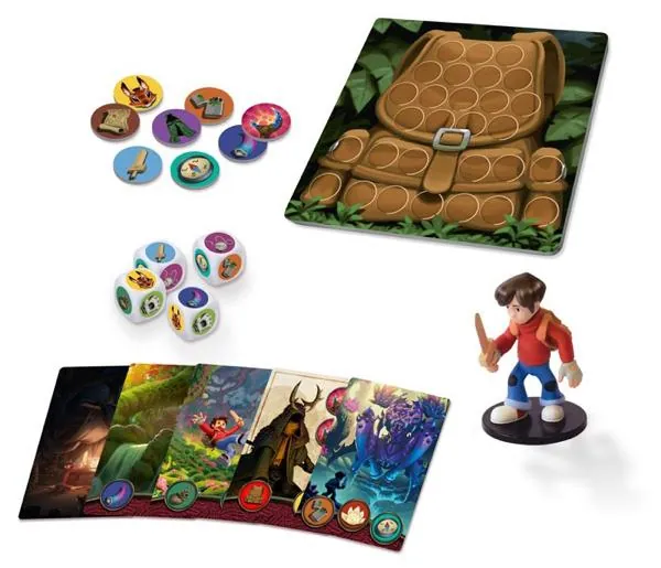 Phase 3 : Partez explorer la Forêt Mystérieuse. Révélez une par une les cartes du parcours, et déposez les équipements qui y sont indiqués. Lorsque tous les éléments d’une carte parcours sont complétés, vous pouvez passer à la suivante.