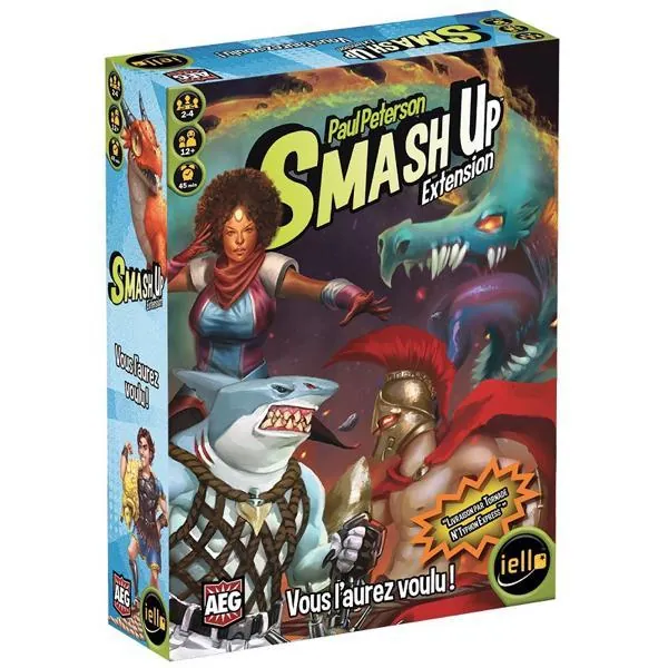 Smash Up: Vous l'aurez voulu ! contient des Requins, qui ont bien l'intention de mâchouiller leurs adversaires. Il y a aussi les Superhéros, volant hors des pages de leurs comics pour anéantir leurs ennemis. Vous avez également choisi de voir les Légendes de la Mythologie Grecque envahir votre table, impassibles devant la puissance et la force destructrice des Dragons !