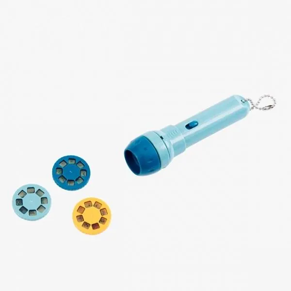Lampe à histoires à projeter au mur grâce à ses trois disques aux trois histoires différentes.