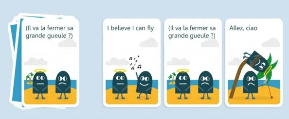 Pavlova Coco c’est Blanc-manger Coco avec des dessins: chaque joueur essaie de créer la bande dessinée la plus drôle possible avec 3 cartes