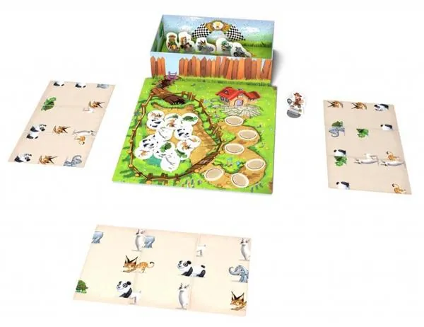 Les animaux s’ennuient dans le zoo et ont envie de prendre la poudre d’escampette. Coopérez, et aidez-les à s’évader ! Chaque joueur pioche trois cartes et tente de reconstituer astucieusement des silhouettes d’animaux. Observez bien les silhouettes : plus vous en associez, plus vous en libérez. Mais attention : le gardien n’est pas loin et se rapproche un peu plus à chaque tour. Combien d’animaux seront sortis du zoo avant son arrivée ?