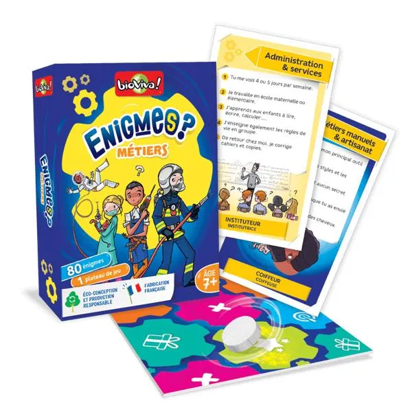Faites preuve d’adresse en lançant le jeton sur le plateau pour tenter de gagner plus de cartes Enigmes - Métiers !