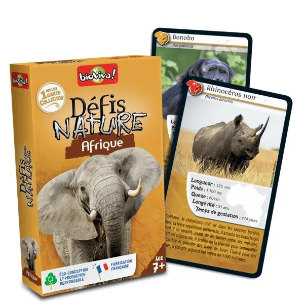 Défis Nature - Afrique vous emmène à la rencontre des animaux d’Afrique les plus surprenants ! Découvrez les espèces à préserver, puis pariez sur les points forts de vos animaux pour collecter toutes les cartes du jeu et remporter la partie. Alors, prêts à relever le défi ?