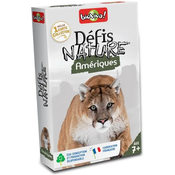 Le principe de Défis Nature - Amériques est simple : les enfants de 7 ans et + parient sur les points forts des animaux. Le joueur qui possède la plus forte caractéristique remporte les cartes des autres joueurs. Le premier à collecter toutes les cartes du jeu gagne la partie.