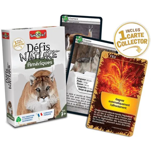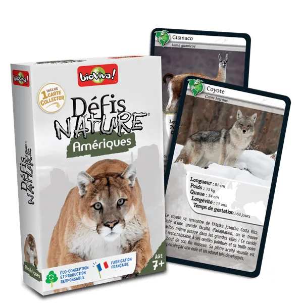Défis Nature - Amériques vous emmène à la rencontre des animaux d’Amérique les plus surprenants ! Découvrez les espèces à préserver, puis pariez sur les points forts de vos animaux pour collecter toutes les cartes du jeu et remporter la partie. Alors, prêts à relever le défi ?