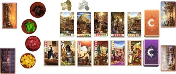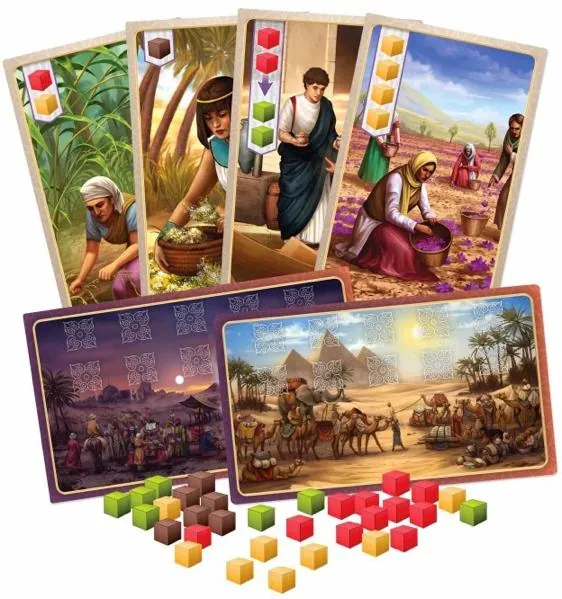 Les joueurs sont des chefs de caravane qui parcourent la célèbre route de la soie pour livrer des épices aux confins du continent pour la gloire et la richesse. Chaque tour, les joueurs effectuent l'une des quatre actions suivantes: