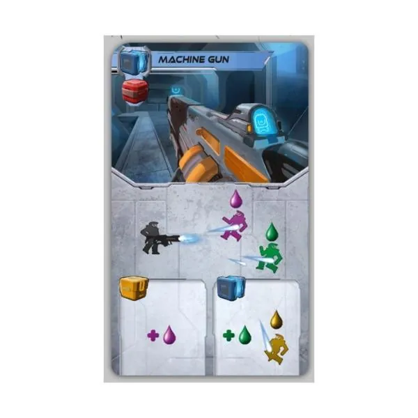 A chaque tour de jeu, vous pouvez vous déplacer, ramasser un objet (arme ou munition), et tirer sur vos adversaires. Munissez-vous des meilleures armes, élaborez votre stratégie, et si vous vous faites tirer dessus, la montée d’adrénaline vous donnera des compétences supplémentaires. Et si l’on vous porte le coup fatal, pas de panique ! Vous ressuscitez et revenez dans la partie. Le gagnant sera celui qui comptabilise le plus de points de victoire.