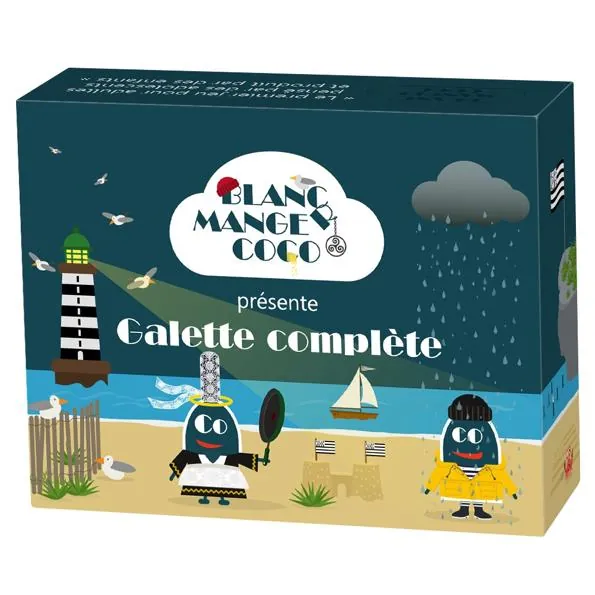 Galette Complète est une extension du jeu Blanc Manger Coco ! Elle est composée de 200 cartes (160 réponses et 40 phrases à trous) portant toutes sur la thématique de la Bretagne. On y retrouve tous les éléments qui ont fait le succès de ce jeu : l’humour, l’irrévérence...