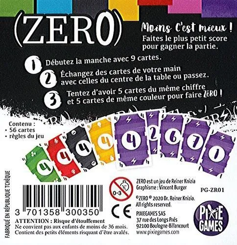 Tentez d'avoir 5 cartes du même chiffre et 5 cartes de la même couleur pour faire ZERO !