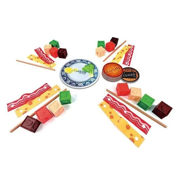 A chaque tour de jeu, une nouvelle commande sera révélée et vous devrez être le plus rapide à utiliser votre matériel (pique, légumes, accompagnements) pour réaliser la commande demandée. Servez-là avant vos concurrents et vous marquerez des points en récupérant la carte commande. Le joueur avec le plus de point losrque la carte " fermeture " apparaît remporte la partie.
