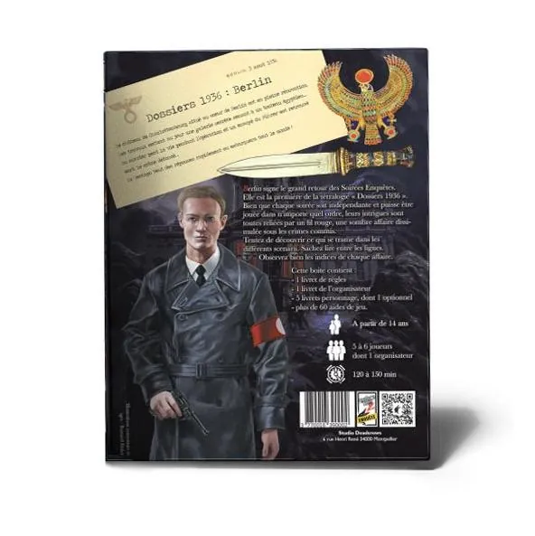Berlin signe le grand retour des Soirées Enquêtes. C’est la première d’une tétralogie « Dossiers 1936 ». Chaque soirée sera indépendante et jouable dans n’importe quel ordre, toutefois, leurs intrigues seront reliées par un fil rouge, une sombre affaire dissimulée sous les crimes commis. Tentez de découvrir ce qui se trame dans les différents scénarios. Sachez lire entre les lignes. Observez bien les indices de chaque affaire.
