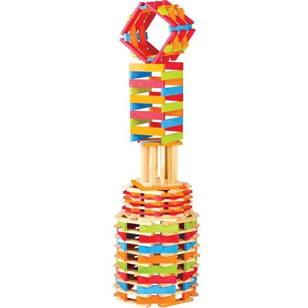 Ce baril contient 200 planchettes en bois de différentes couleurs afin de réaliser une multitude de construction en suivant les fiches modèles ou laisser libre cours à la créativité et l'inventivité des enfants.