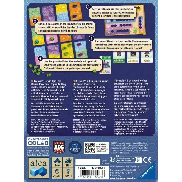 À la tête d’une colonie d’abeilles, envoyez vos abeilles collecter des pollens, construire des bâtiments et gagner les faveurs de la reine.Avec les cartes doubles-faces et la disposition des champs de fleurs, chaque partie est différente.