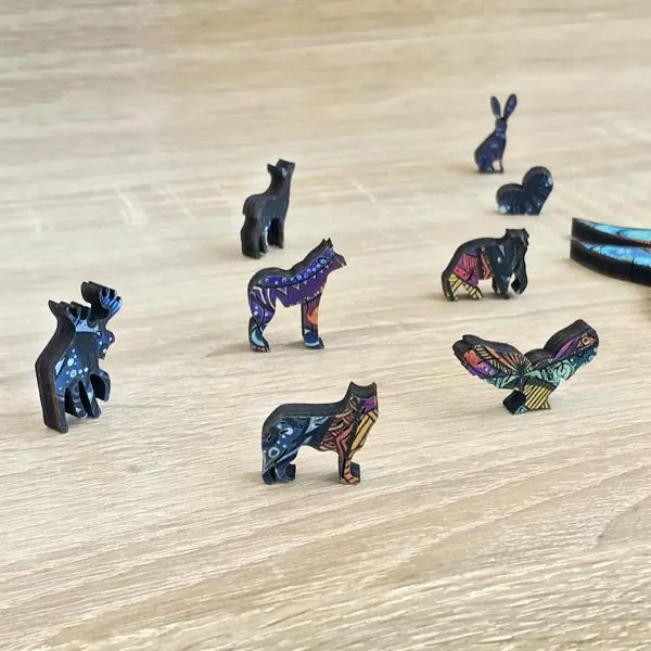 Lors du montage de ce puzzle unique, vous rencontrerez les amis de notre Hibou savant. Chaque pièce du puzzle révèle au fur et à mesure le Hibou. Vous trouverez un loup, un renard, un lièvre, ou encore un élan et d’autres animaux de la forêt.