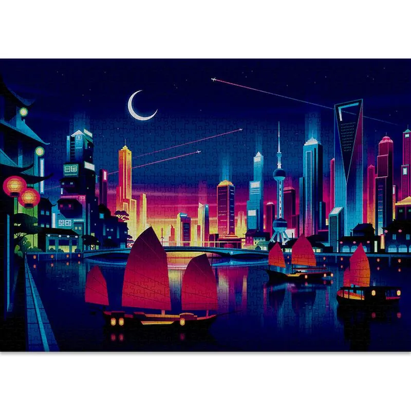 Assemblez le puzzle puis révéler des avions à réaction, des voiliers et des bâtiments futuristes, et donnez vie à la ville !