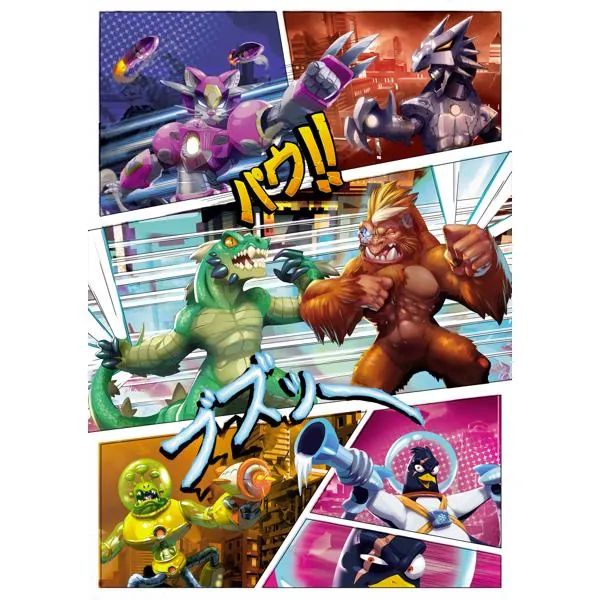 Cette illustration a été construite en mettant en scène les monstres de la réédition du jeu King of Tokyo, un jeu de Richard Garfield.