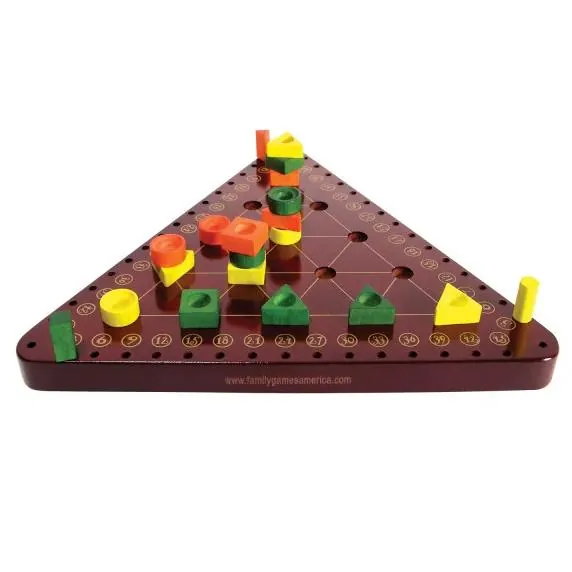 Chaque joueur choisit un gardien et le place au début de sa piste de score. La couleur du gardien de score correspond à la couleur du marqueur utilisé par chaque joueur. Jetez les 45 marqueurs et les 9 bizarreries dans le sac et, à votre tour, tirez un marqueur du sac. Le jeu consiste à créer des triangles de n'importe quelle taille, et sur n'importe quel niveau, sur le plateau. Chaque marqueur doit être joué. De temps en temps, vous tirerez une bizarrerie du sac, qui changera votre couleur, votre stratégie et votre santé mentale. Le jeu se termine lorsque toutes les pièces ont été jouées.