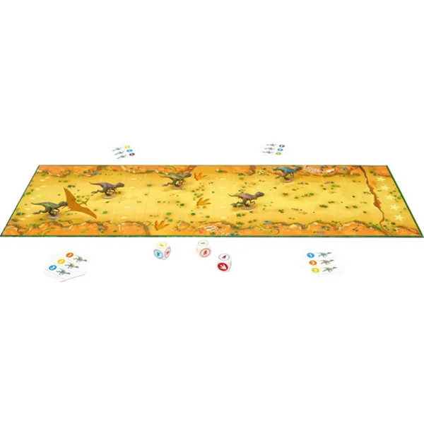 À votre tour, lancez les dés, relancez-en certains pour obtenir les résultats qui vous arrangent, puis déplacez les raptors dont les couleurs correspondent. Les faces Tyrannosaure, de leur côté, permettent de faire reculer des concurrents pour les retarder.