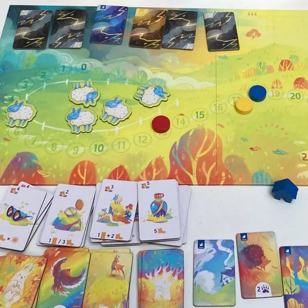 En effet, si des tuiles tempête sont piochées, elles sont ajoutées à la piste météo, s’il y en a trop, les promeneurs sont surpris et ne gagneront pas les points donnés par les animaux qu’ils ont croisés sur leur parcours. Un petit côté stop ou encore dans un paysage bucolique et apaisant ! Mais durant votre balade, achetez de nouvelles tuiles à mettre dans votre sac pour améliorer vos parcours et récolter le plus de points possibles.