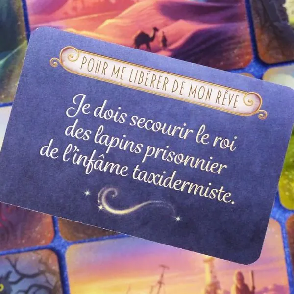 Le jeu se joue en plusieurs chapitres. Au cours d’un chapitre, les Guides inventent tour à tour les péripéties rencontrées par le Rêveur, en respectant la contrainte narrative de leur carte Guide (exemples : simple description, obstacle, moment mignon, etc.). Pour cela, ils peuvent s’aider de leur carte Inspiration qui leur suggère des mots-clé. Le Rêveur, quand à lui, écoute attentivement le récit puis – une fois que tous les Guides se sont exprimés – doit retrouver le sens caché derrière chaque intervention, à l’aide de ses cartes Rêveur (identiques aux cartes Guide en jeu). Un certain nombre d’associations réussies permet de passer à un nouveau chapitre, avec des contraintes qui évoluent. A l’inverse, chaque échec entraîne le Rêveur plus profondément dans son rêve, au risque de ne plus pouvoir en sortir… Si les joueurs arrivent tous ensemble au bout du rêve, le Rêveur est libéré et la partie est gagnée.