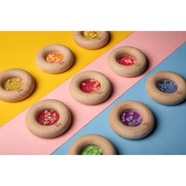 Un beau donut sensoriel rempli de carottes et de petites billes qui vont capter l’attention des petits.