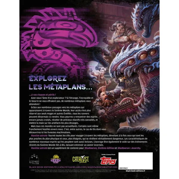 Hantise astrale fournit toutes les clés pour voyager à travers les métaplans, décrivant les plus proches du plan physique et ceux, plus éloignés, qui se révèlent véritablement hostiles. Vous y trouverez également les caractéristiques de nombreux esprits qui peuplent ces plans. Enfin, vous obtiendrez des informations sur des événements récents du Sixième Monde liés à Dis, laissant entrevoir un avenir incertain.