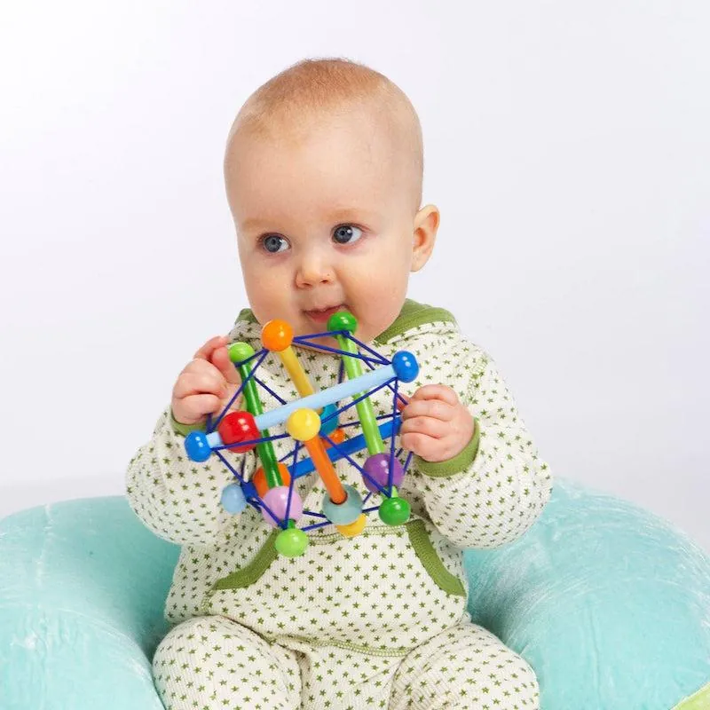 Le mouvement et le bruit des perles qui montent et descendent le long des bâtonnets fascineront les bébés. Ils vont adorer le regarder, le mordiller, le secouer, l’écraser...