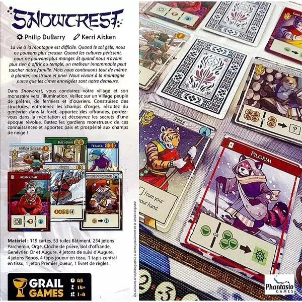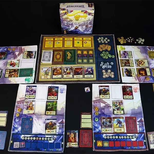 Snowcrest est un jeu de cartes de construction de tableaux. Chaque joueur développera un village dans les montagnes de Snowcrest, en essayant de prospérer sur le sol glacé.
