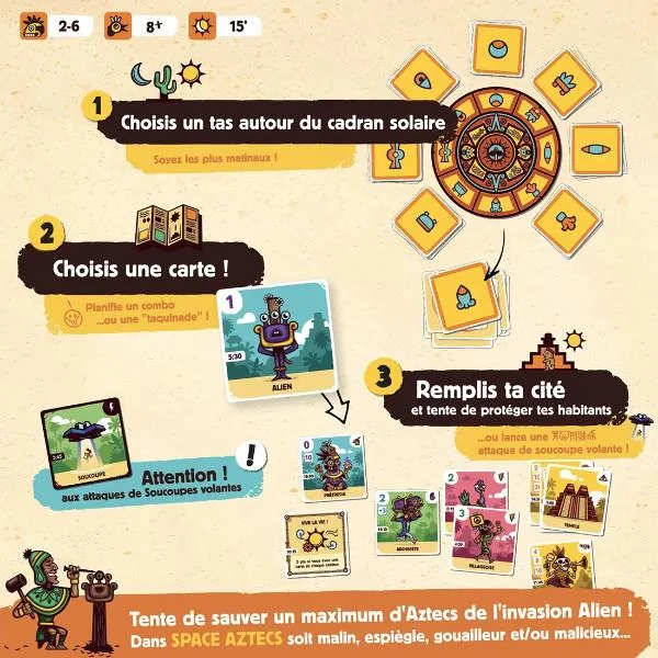 Le but de chacun est de cumuler des points en rassemblant les habitants de sa cité et de tâcher de les protéger des attaques de soucoupes volantes.