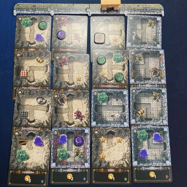Les joueurs piochent et jouent simultanément des cartes pour agrandir leurs donjons, une chambre à la fois. Suivez un plan unique et une variété de défis à relever pour marquer des points. Choisissez entre tracer un chemin dans vos passages souterrains, placer des éléments clés dans vos salles ou chercher des trésors supplémentaires.