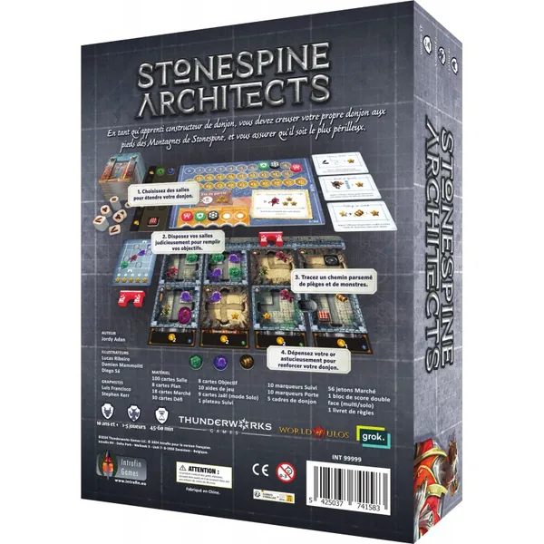 Stonespine Architects est un jeu de drafting de cartes dans lequel 1 à 5 joueurs s'affrontent pour construire le labyrinthe le plus dangereux.