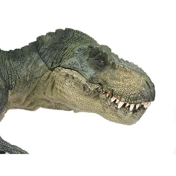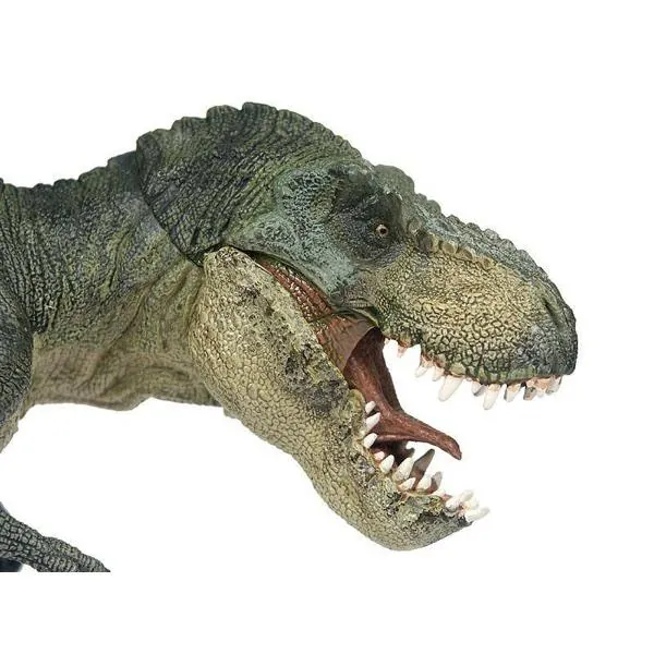 Le Tyrannosaure à vécu il y a environ 70 millions d'années et figure parmi les plus grands dinosaures carnivores.  Avec un corps gigantesque de près de 12 m de long et des dents pouvant mesurer jusqu'à 20 cm, ce bipède pourvu de touts petits bras pouvait dépasser les 6 mètres de haut et peser plus de 6 tonnes. D'un grand réalisme, le modèle reproduit par PAPO permet dadmirer la puissante musculature du T-Rex. L'articulation de la mâchoire met en avant la dentition impressionnante du prédateur !