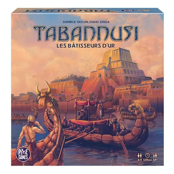 Tabannusi présente un superbe plateau montrant la ville d'Ur divisée en 5 régions, chacune liée à un dé de couleur spécifique. Il y a 3 quartiers de construction, 1 quartier de temples et 1 quartier portuaire.