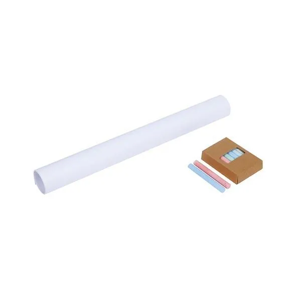 Vendu avec rouleau de papier, 12 craies, brosse et pinces amovibles pour maintenir le papier.