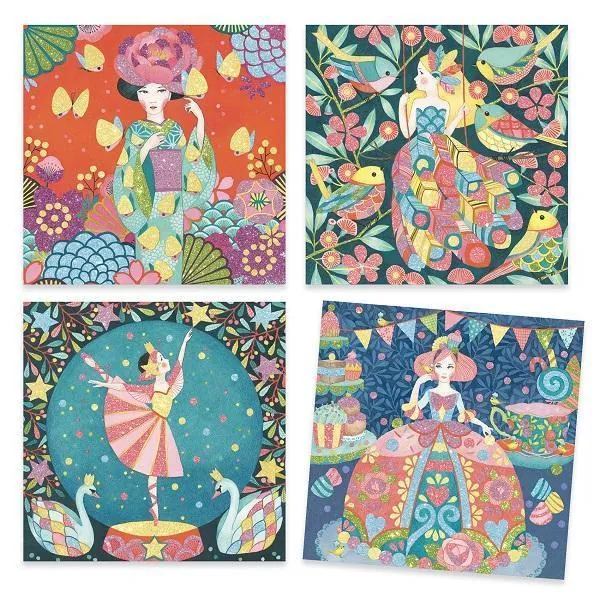 4 tableaux oniriques à illuminer de paillettes colorées.