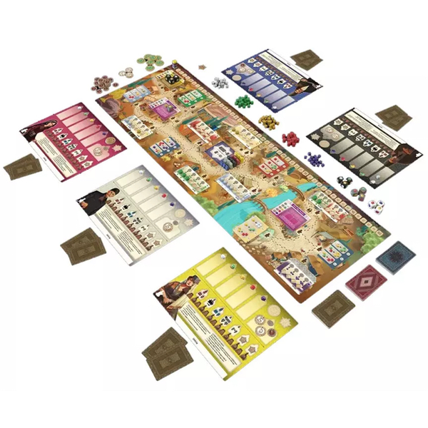 À votre tour, vous déplacez l'un des trois meeples d'assistant dans le Grand Bazar et effectuez l'action là où il atterrit. Les actions comprennent l'achat, le commerce et le lancement de dés pour la laine, le poil de chameau, la soie, la teinture végétale et la teinture carmin. Chaque assistant a une portée limitée, mais avec une bonne planification, vous pouvez mettre en place une série d'actions rapides et efficaces qui vous permettront d'obtenir tous les matériaux dont vous avez besoin pour vos commissions avant qu'un autre joueur n'ait terminé la sienne.