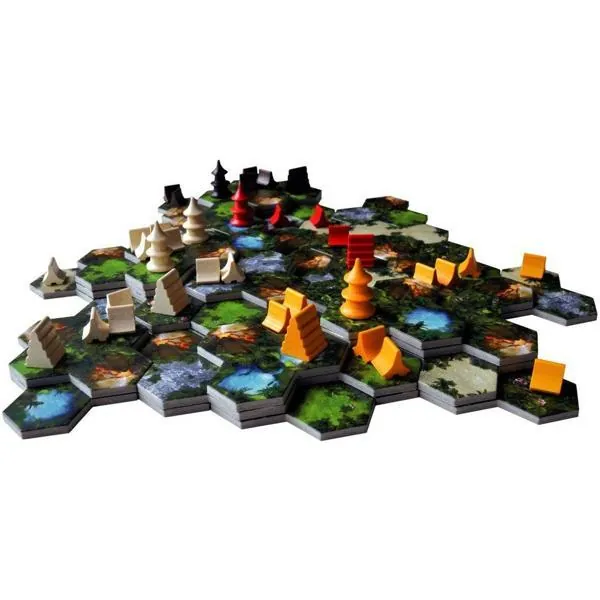 À chaque tour de jeu, l’île de Taluva s’étend et de nouveaux paysages apparaissent ; vous devrez trouver les meilleurs emplacements pour bâtir vos huttes, temples et tours. Méfiance toutefois : les adversaires vous observent et prendront un malin plaisir à saccager vos constructions…