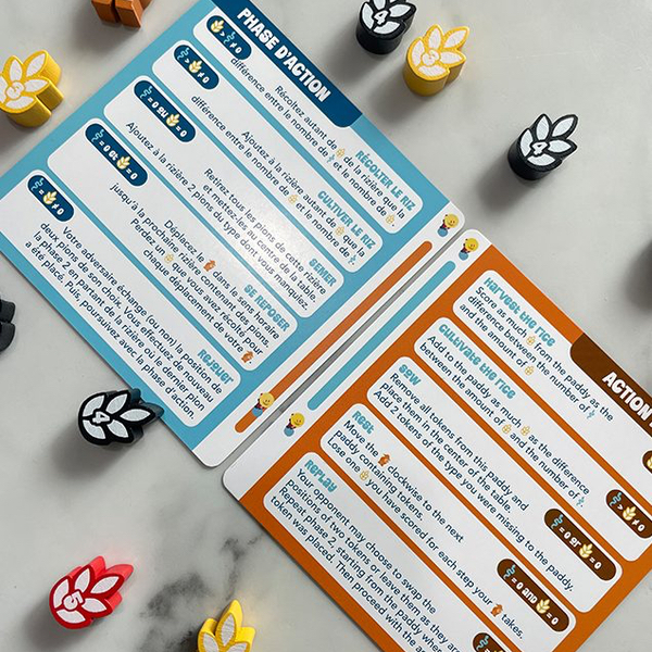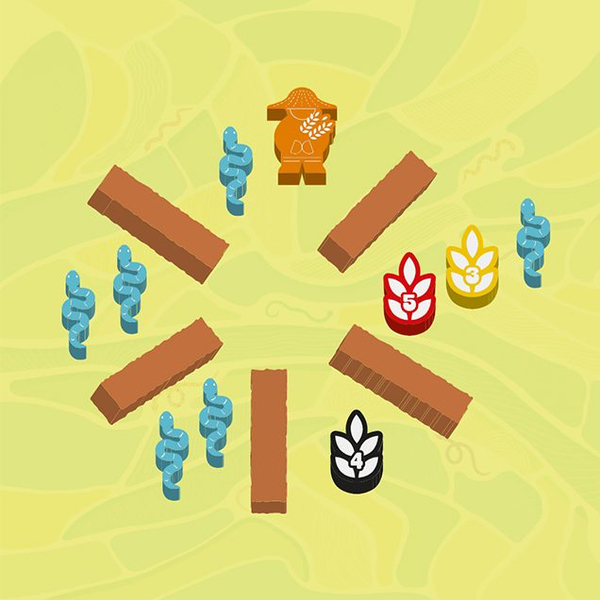 Plus il y aura de serpents, plus la récolte sera abondante. Cependant, il vous faudra limiter la présence de ces reptiles pour pouvoir récolter le riz. Déplacez vos meeples dans les rizières, activez les effets et récoltez le plus de riz possible !
