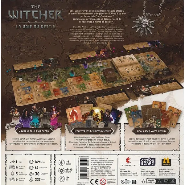 The Witcher : La Voie du Destin est un jeu de cartes compétitif de construction de plateau où vous incarnez un personnage des récits les plus emblématiques de l'univers Witcher.