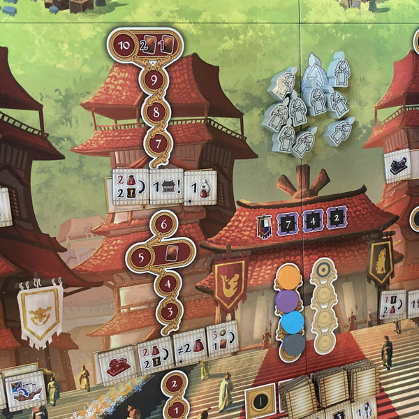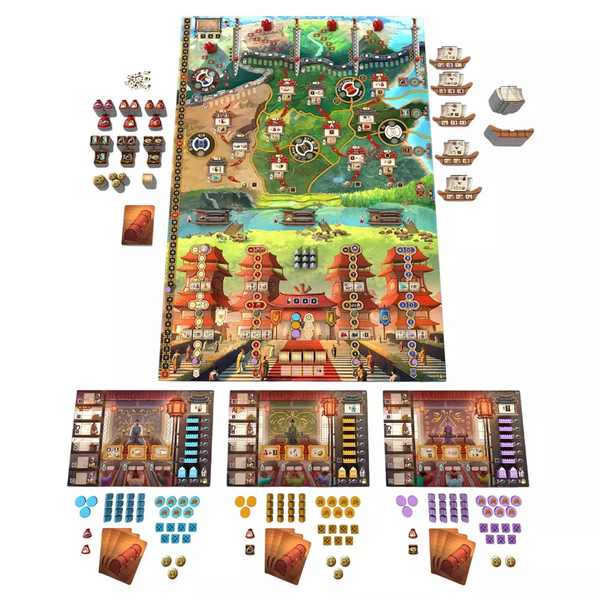 La partie se déroule en quatre manches, au cours desquelles vous nommez des gouverneurs dans les différentes régions, renforcez le pouvoir des familles royales rivales dans l’espoir de gagner leurs faveurs, et vendez des marchandises aux navires de commerce qui sillonnent les côtes chinoises afin de vous enrichir et de glaner quelques avantages. N’oubliez pas pour autant les guerriers nomades qui menacent constamment les frontières septentrionales des sept royaumes. Il vous faudra pour cela former des soldats, construire des murailles et ériger des tours afin de fragiliser ces envahisseurs et protéger les intérêts et le prestige de votre famille. À chaque manche, les Xiongnu sont toujours plus nombreux à se rassembler aux frontières des sept royaumes. Lorsqu’ils atteignent la frontière, une bataille s’engage et tous les joueurs doivent y prendre part.
