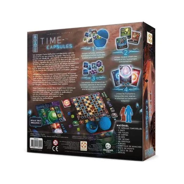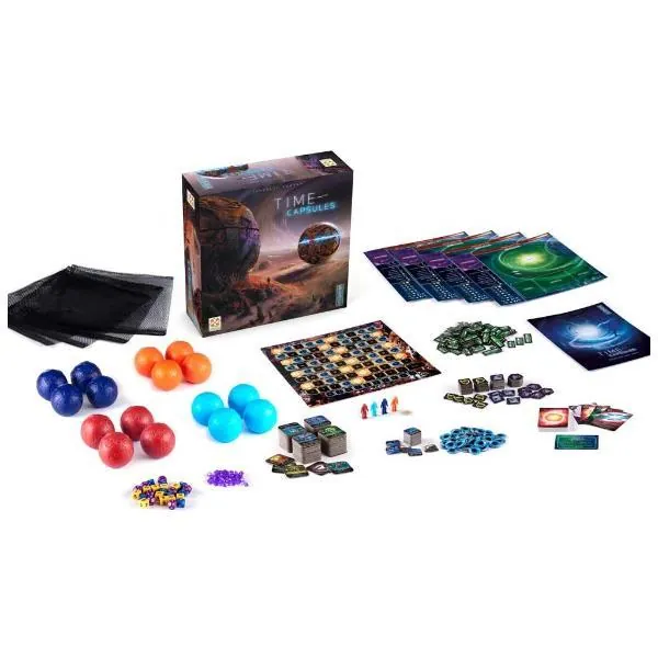 Time Capsules est un jeu de plateau de stratégie sur la course à l'utilisation de technologie aliens. Gestion de ressources, et utilisation des Times Capsules pour optimiser les artefacts retrouvés.