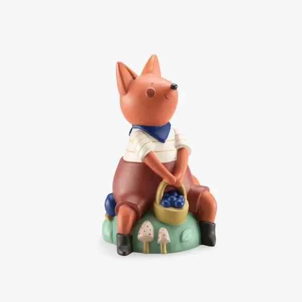 Voici la tirelire Harry l'écureuil, son panier rempli de myrtilles dans les mains, il gardera précieusement toutes les pièces des enfants.