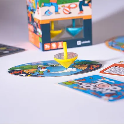 Top Toopy est un jeu d’adresse familial unique en son genre, mêlant spectacle, fun et acrobaties avec des toupies