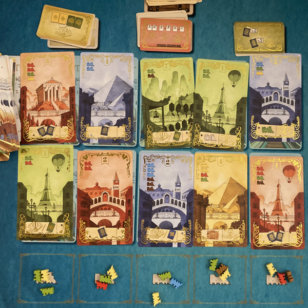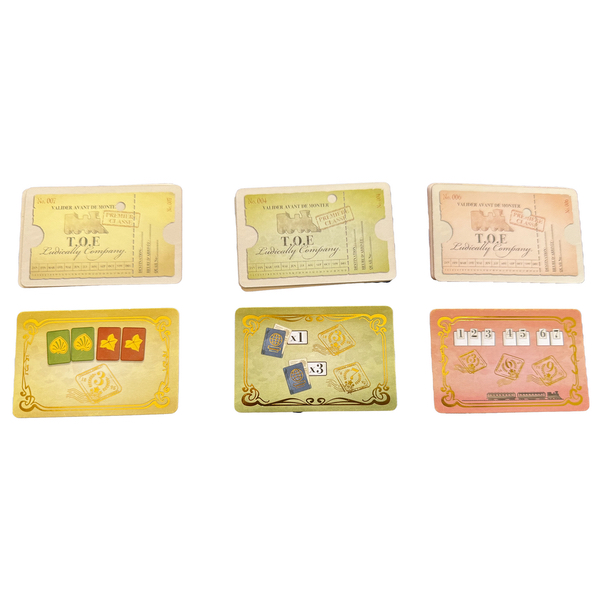 Pour ce faire, les joueurs collectent des ressources colorées, symbolisées par de petites locomotives, qu’ils utilisent pour acheter leurs cartes de voyage.